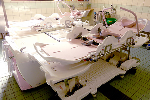 寝たままの楽な体勢で入ることが可能な浴槽と霧状のシャワーが心地よいミスト浴の2種類の特殊浴槽がございます。