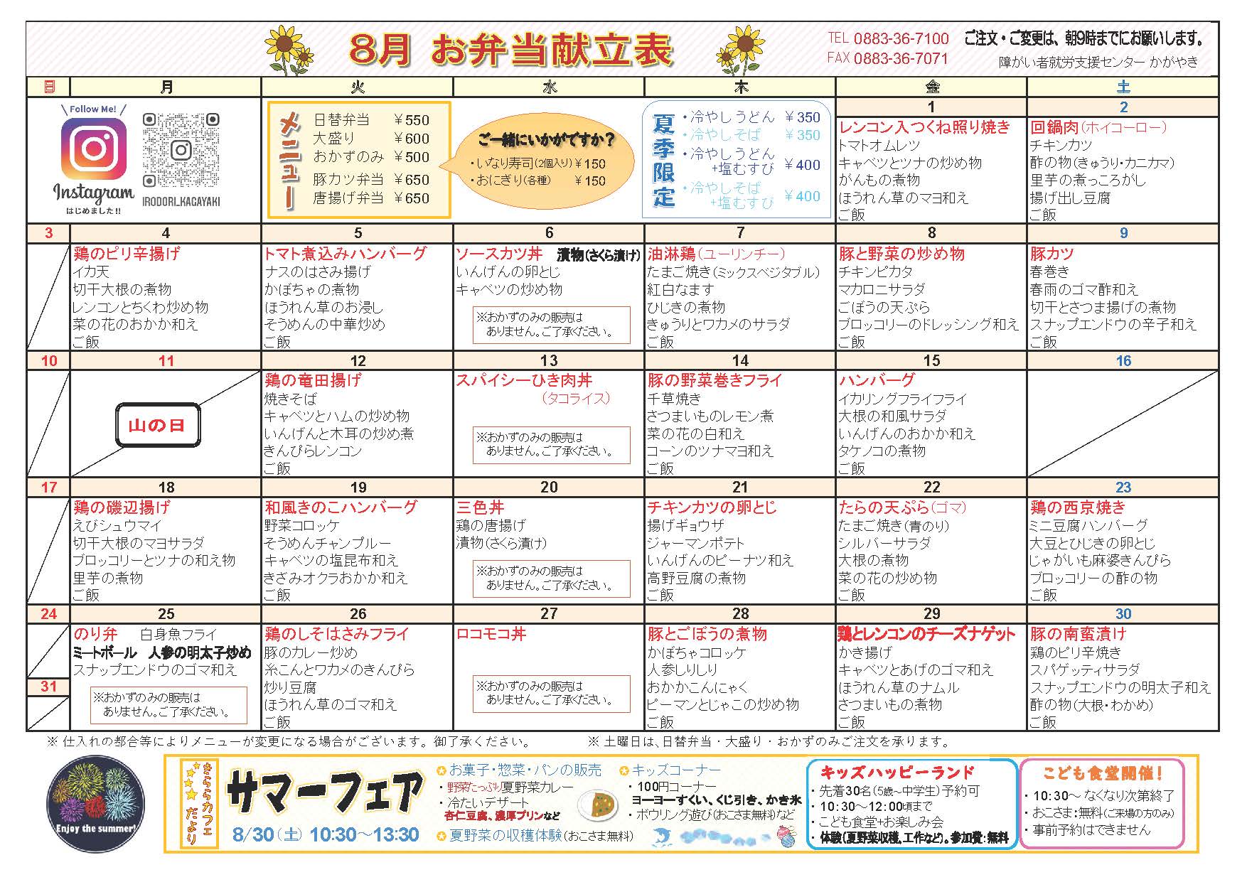 【かがやきお知らせ】8月日替弁当献立のお知らせ