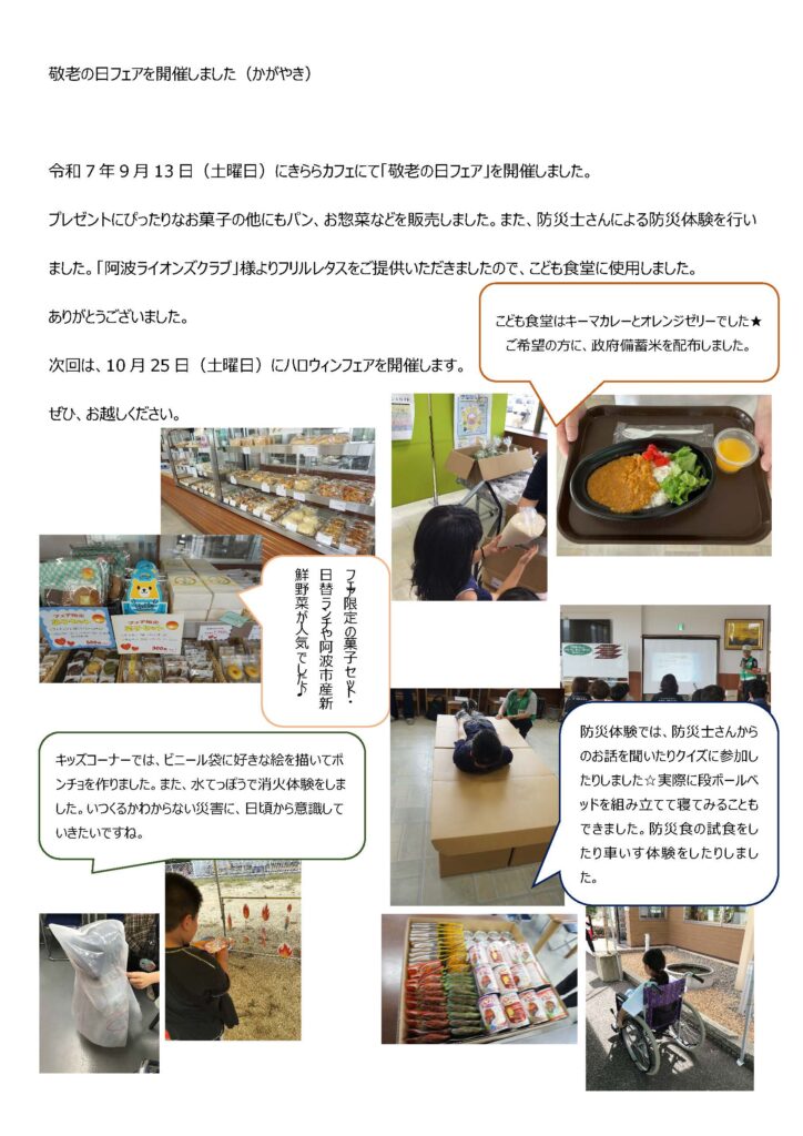 令和7年9月13日(土曜日)にきららカフェにて「敬老の日フェア」を開催しました。